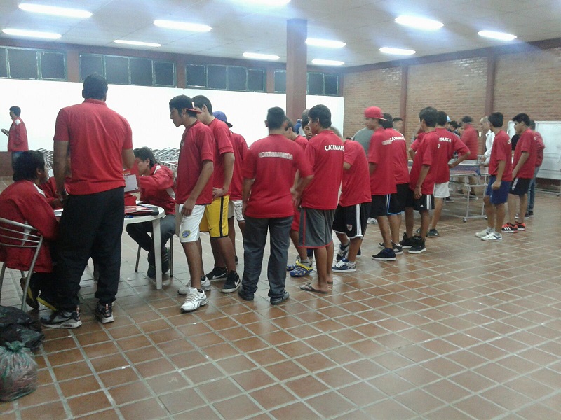En las fotos, los chicos de la "Alfonso de la Vega", en el momento de sus acreditaciones al llegar al CEDAR de Tucumán, donde tiene lugar el evento.