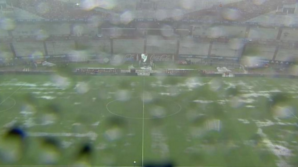 Es que lentamente, el agua se fue acumulando en el verde césped del Monumental y, a menos de dos horas para el inicio del partido, aparecieron los primeros charcos. Por supuesto, muchos comenzaron a preocuparse por la realización del partido. ¿Cómo estará el campo cuando la pelota comience a rodar? ¿Aguantará?