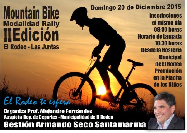 Las inscripciones abierta el mismo día de la competencia a las 08:30 hs., horario de largada será a las 10:30 hs. Desde la Hostería Municipal de El Rodeo, contara con la presencia de alrededor de 60 competidores.