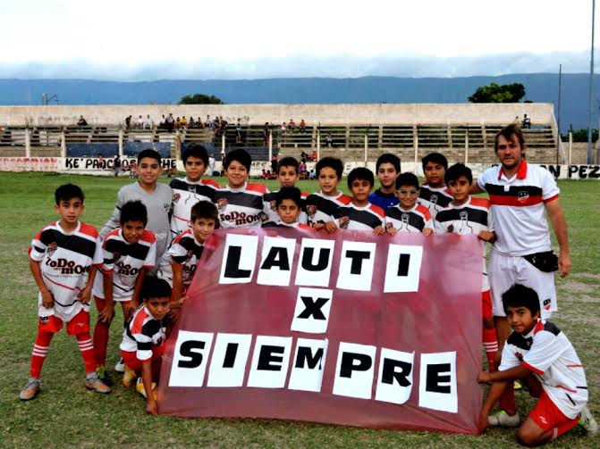 Tula Robert a la cabeza, homenajeó con las frases "Lauti x Siempre" y