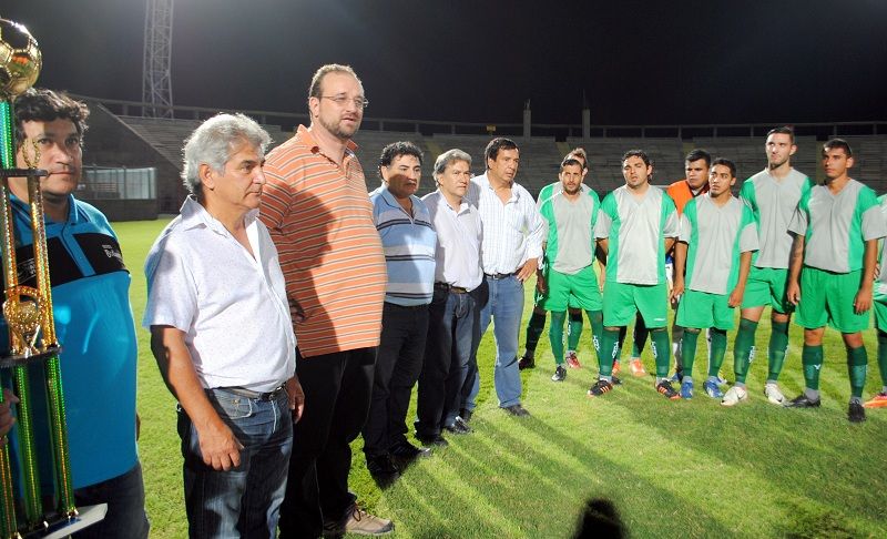 En simpático gesto, del trofeo puesto en juego en la ocasión por la Revista "Botineros” fue recibido por "El Ruso" Rolando Vergara, un permanente colaborador de Los Sureños y de la Liga Chacarera, que se dio el gusto de compartir un momento del cotejo con varios de sus ídolos deportivos.