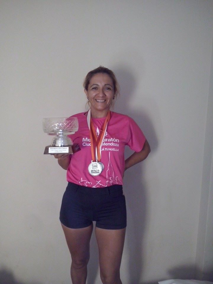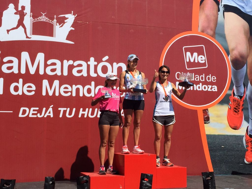 los 21km y 10km, Mónica empleó un tiempo de 1h 34m 47s subiendo al podio