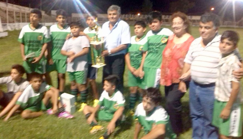En las fotos, el equipo campeón de San Martín de El Bañado y Los Sureños junto a los integrantes de la familia Avellaneda.