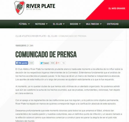 falta de información, River envió un comunicado de prensa para expresar su