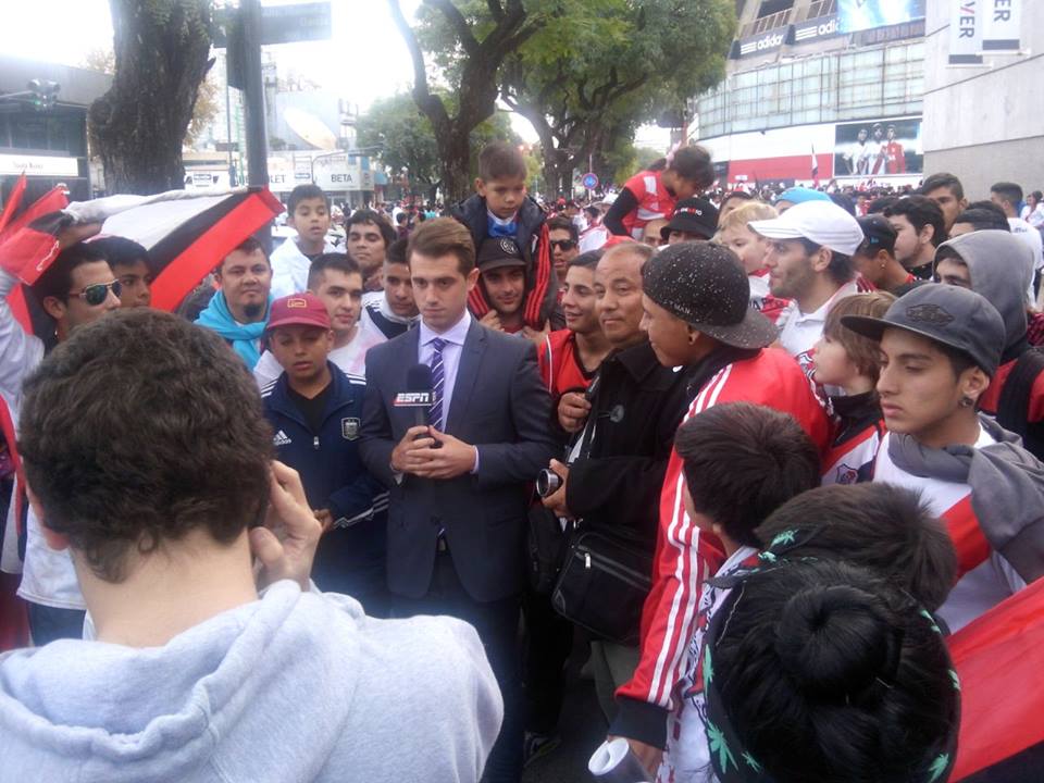 "Y fue una sorpresa –continuó, el también locutor de Radio Estilo de Piedra Blanca-, cuando el productor de ESPN Deportes, me convocó para una nota, entre miles de hinchas que se encontraban frene el estadio Monumental, por este nuevo aniversario de River”.