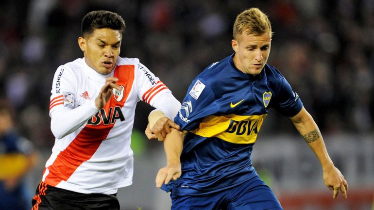 El uruguayo Carlos Sánchez convirtió de penal y River Plate le gana 1-0 a Boca Juniors, a los 36 minutos del segundo tiempo, en el estadio Monumental, por los octavos de final de la Copa Libertadores.
