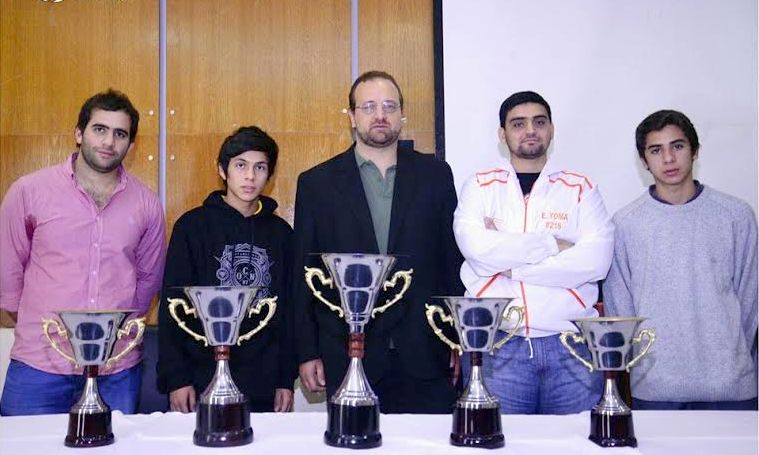 Axel y Maximiliano Ayala, el secretario de Deportes, Maximiliano Brumec y los