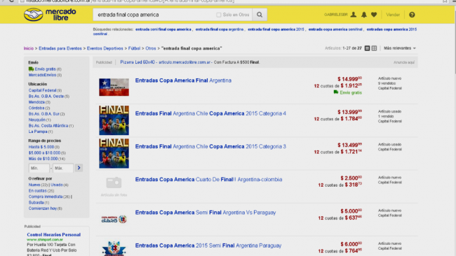 Es que la reventa está que arde, con "ofertas" (????) en las principales páginas de comercio electrónico que parten desde los 13.000 pesos, y llegan a los $ 15.000.