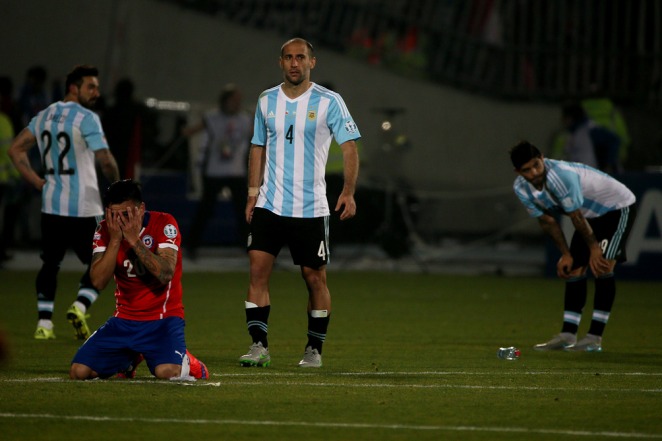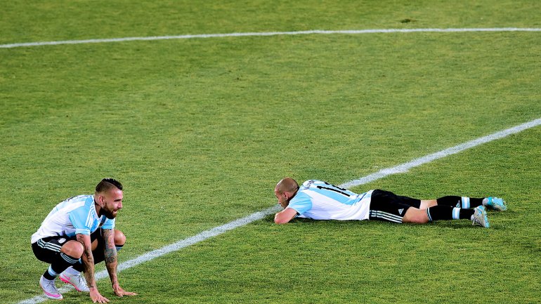 Ver a toda la defensa argentina y Javier Mascherano tirados
