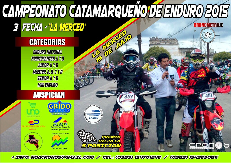 Con la organiza y fiscalización de la HACER la competencia está habilitada para las categoría Enduro nacional, Principiantes A y B, Junior A y B, Máster A, B, C y D, Sénior A y B y Mini Ebduro.