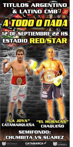 Carlos "Caballero Azul” Chumbita (14-4 con 6 Ko) vs. Guillermo "Pantera” Suárez (17-4 con 5 Ko, de Córdoba).