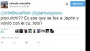 "Jaki", la mujer de Leonardo Pisculichi, publicó una foto del "Cata" Díaz con una dura frase. Y, al ver esto, la esposa del defensor de Boca respondió con tres tuits.