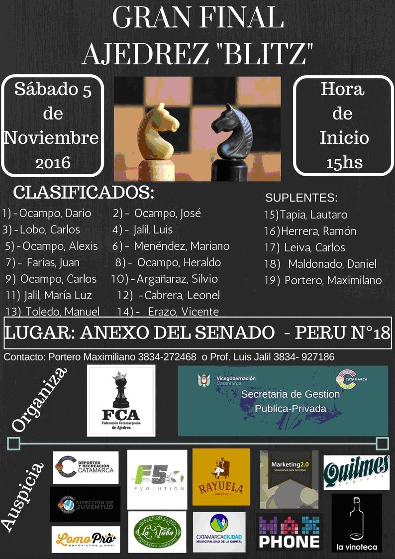 llevarse el título, al campeón del Súper Blitz del año 2016, donde el Prof.