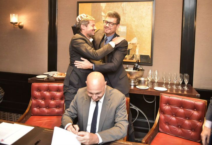 San Lorenzo, Matías Lammens, y el vicepresidente, Marcelo Tinelli, firmaron el