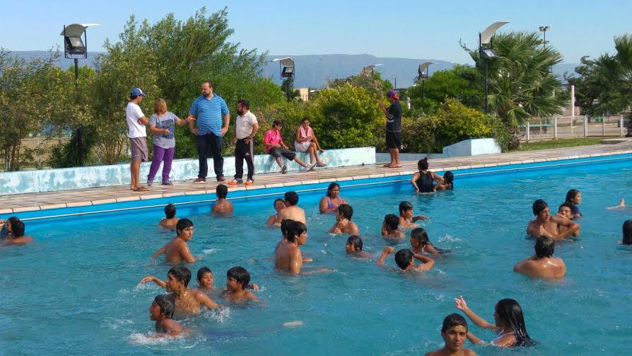 importante movimiento de chicos y jóvenes en la pileta de natación del predio.