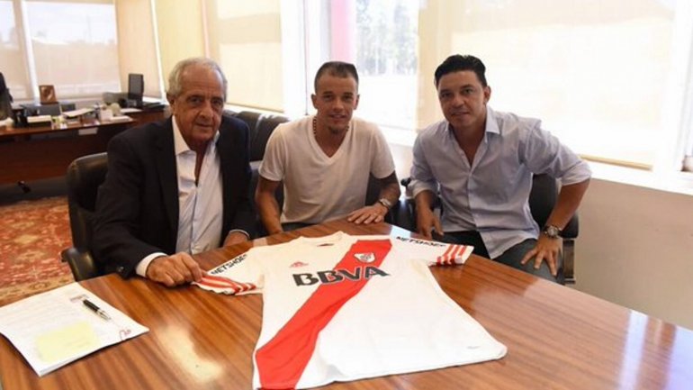 D'Alessandro fue presentado oficialmente en sociedad junto al entrenador, Marcelo Gallardo, y el presidente, Rodolfo D'Onofrio.