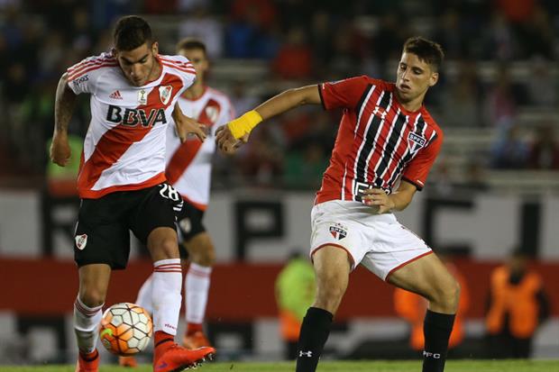 El volante de San Pablo Ganso abrió el marcador (PT 16min) y el defensor paulista Thiago Mendes, en contra, convirtió el empate para el conjunto 'Millonario', en el encuentro que fue controlado por el chileno Julio Bascuñán.