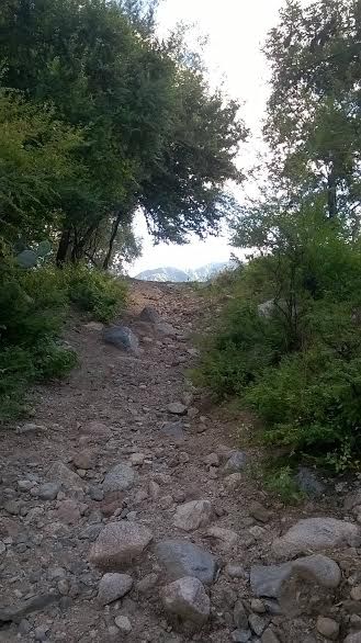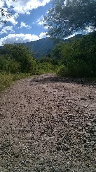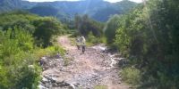 la derecha, por el lecho del rio se encontraran con el camino de tierra que los