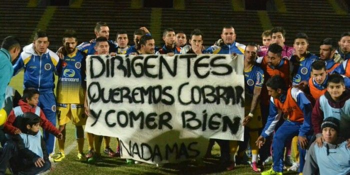 Los malos augurios para Policial se habían anticipado el viernes por la noche cuando el arquero Gonzalo González anunció en "Botineros al aire” que dejaba el equipo (al final se quedó e hizo un gol de penal), al igual que el riojano David Romero Neyra. Y se patentizaron el mismo domingo, cuando los jugadores salieron a la cancha con un improvisado cartel que rezaba: "Dirigentes, queremos cobrar y comer bien, nada más”.