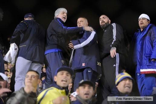 Leonardo Jara y Marcelo Meli; Cristian Pavón, Carlos Tévez y Federico Carrizo.