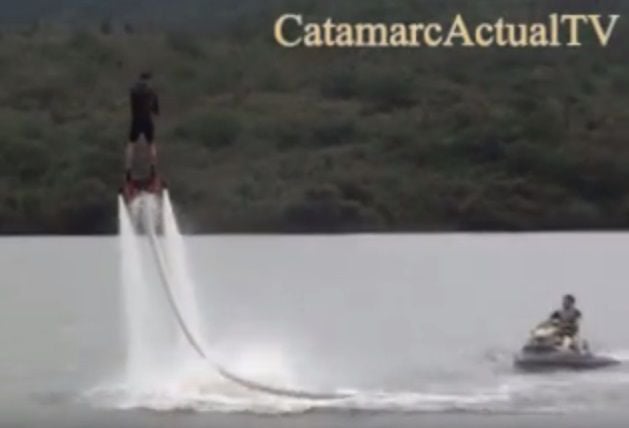De repente, el hombre se dejaba caer al agua, y salía impulsado desde la profundidad del dique Las Pirquitas, como si fuera un "delfin" o al mejor estilo de película de ciencia ficción.
