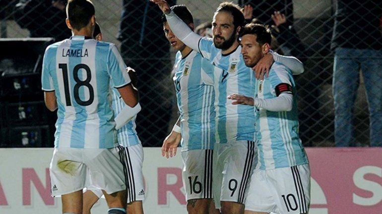 Biglia, Javier Mascherano, Erik Lamela; Ángel Di María, Lionel Messi y Gonzalo