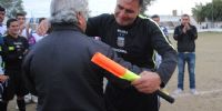 presidente del Colegio de Árbitros, Walter Chazarreta, entregándole una plaqueta