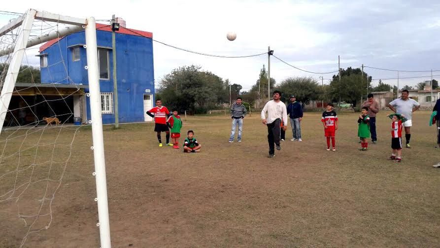 junto a sus hijos, se realizó el "tiro al travesaño" donde cada padre