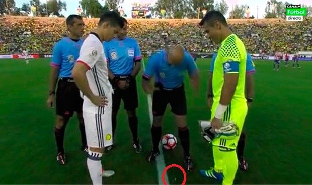 del árbitro. Tiró la moneda que voló por los aires y al caer, quedó parada. Insólito.