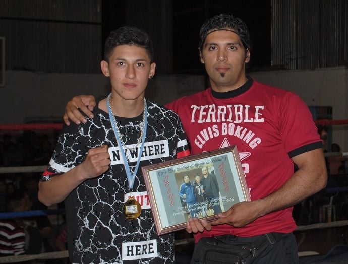 con una plaqueta al juvenil púgil Josué "Mojarrita” Agüero, quien recientemente se coronara campeón Argentino de