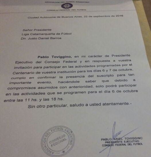 exhibió la nota del dirigente "afista” aceptando la invitación, y aclarando que