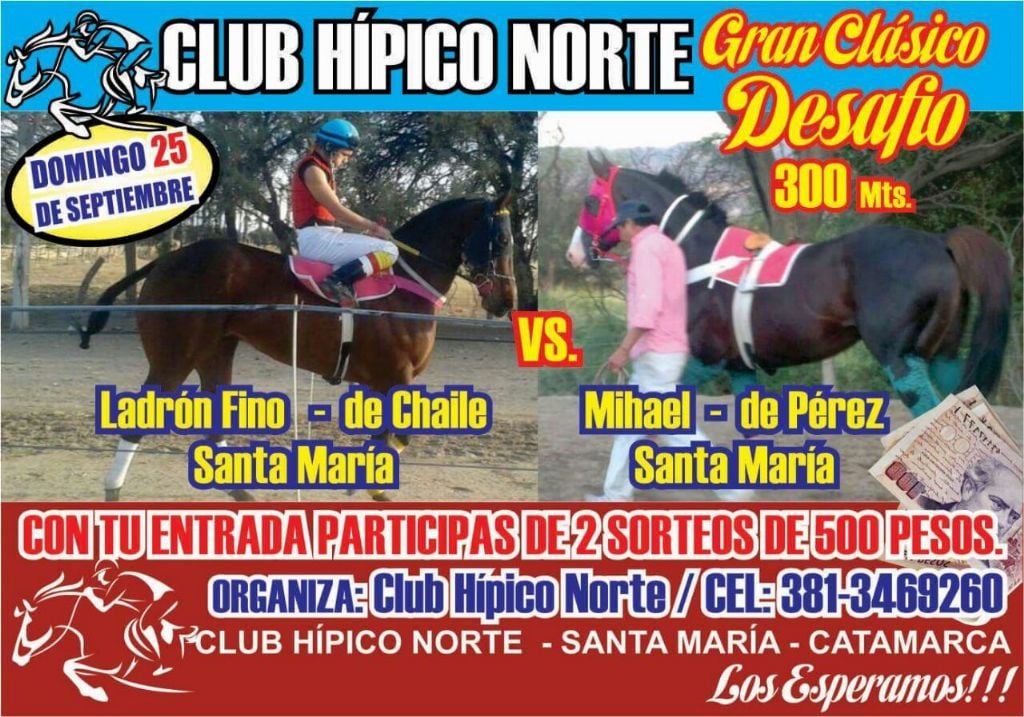 La cita está prevista para las 15 horas en el club hípico del norte donde se medirán en la primera carrera: Mojarrera (de Las Mojarras) contra Rengo Boy de (Loro Huasi) a 200 metros.