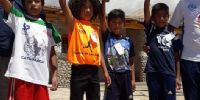 los niños de la zona quienes hicieron gala de sus destrezas de corredores de