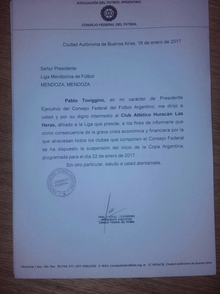 Ya la 1ra. B Nacional había tomado "la decisión de no comenzar el campeonato, previsto para el 04 de febrero, ante el constante incumplimiento de los pagos comprometidos por parte del Comité Regularizador, que en este momento tiene como cabeza visible al Dr. Javier Medin”, y añadiendo que "a la medida podrían sumarse los clubes del Federal A, que deben comenzar la 2da. Fase (Aconquija) y la Revalida (San Lorenzo de Alem) del Torneo Federal A”.