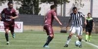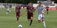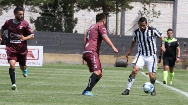 El equipo de Marcelo Fuentes llegó a la primera conquista cuando finalizaba la primera etapa. Juan Martín Amieva se elevó y con un certero cabezazo, abrió el marcador para el blanquinegro.