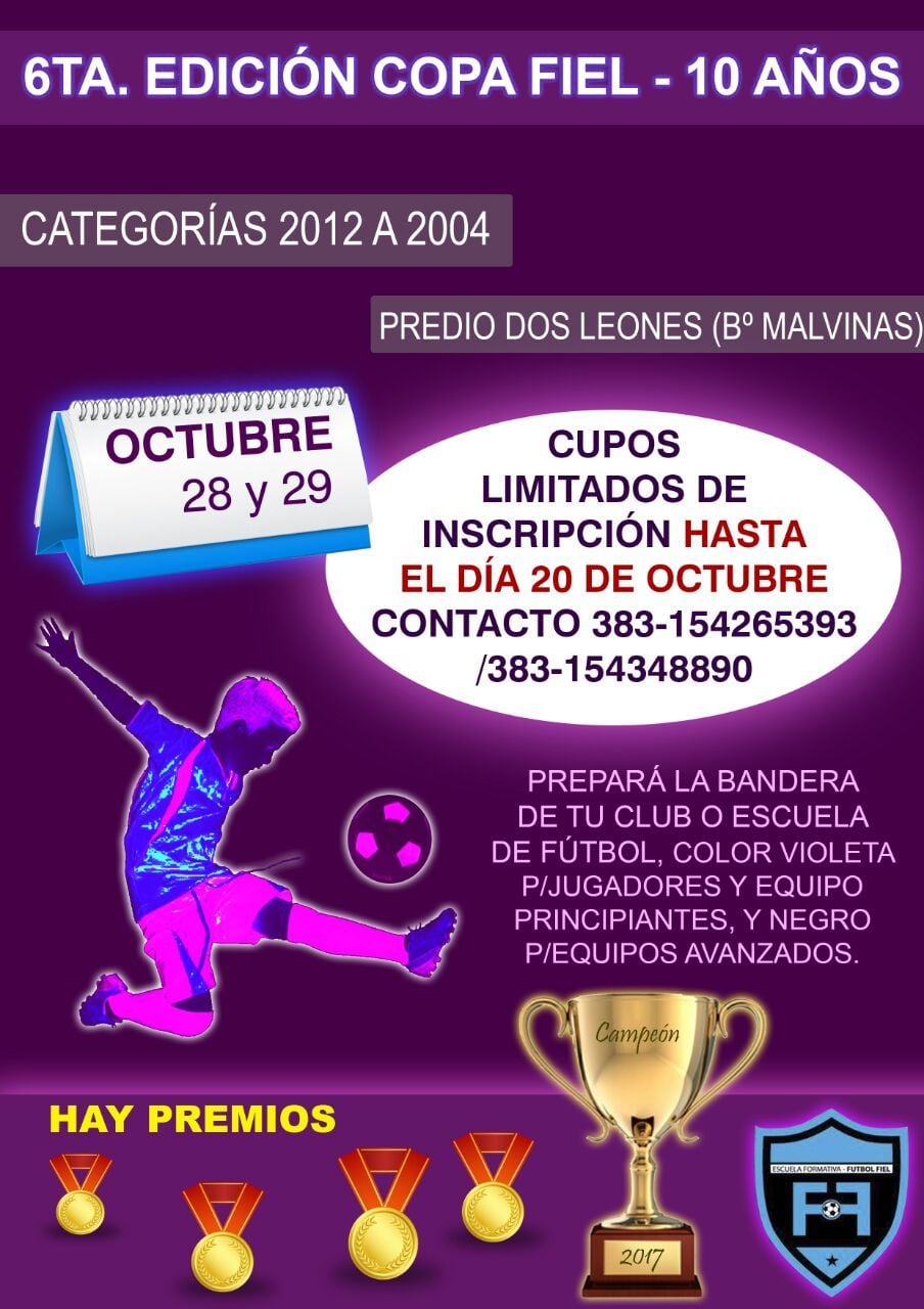 Del certamen participarán equipos de la escuela organizado, La Fiel, como del Club Juventud, La Carrera, La Tercena, Escuela Raúl Herrera, Sociedad de Fomento de Villa Cubas, Escuela Soñadores, Inter del Norte, Escuela "La hora referí”, Club Lavalle, Tinogasta, La Rioja y Escuela de San Antonio.