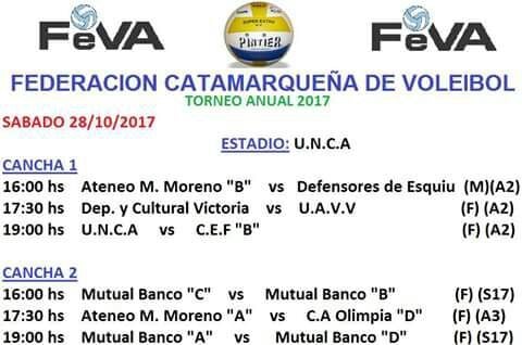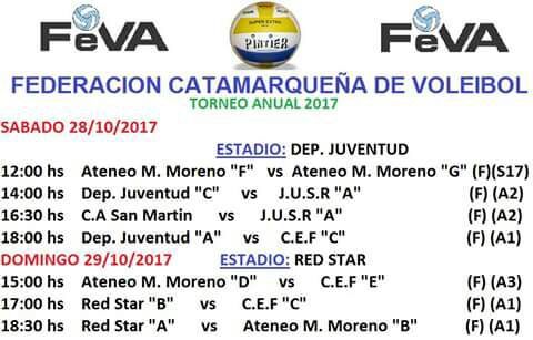 2 fotos 2 fotos sábado, 28 de octubre de 2017 09:45 sábado, 28 de octubre de 2017 09:45 Esta tarde se juega en las canchas de la UNCa, la Mutua Banco y el Club Deportivo Juventud; mientras que mañana habrá acción en la cacha de Red Star. La programación está en las fotos que ilustran la crónica.