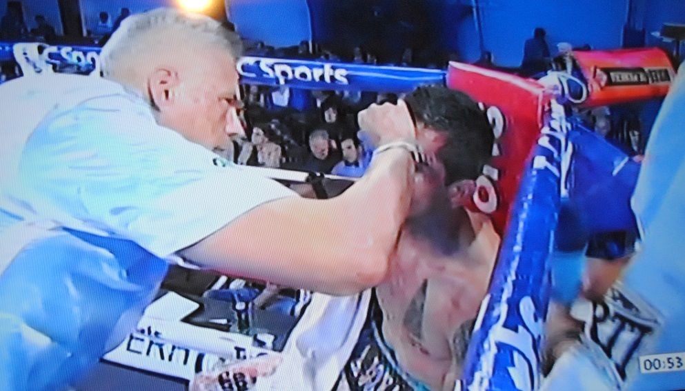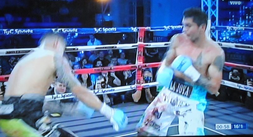 El combate alcanzó ribetes francamente dramáticos, a partir del cuarto round cuando Verón en un cruce involuntario le partió el arco superciliar derecho a nuestro comprovinciano. Lejos de amedrentarse, el "Zurdo” espero el momento justo, hasta que en el sexto capítulo y en una perfecta combinación de izquierda y derecha a las mandíbulas de su oponente, dejó bamboleando al desafiante sobre el ring, hasta que el árbitro Mario González abrazó al retador decretando el final del pleito ante la imposibilidad de que pudiera seguir combatiendo.