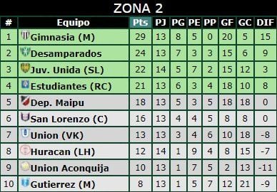 Gutiérrez (Mza.) 13 1 5 7 12 21 -9 8