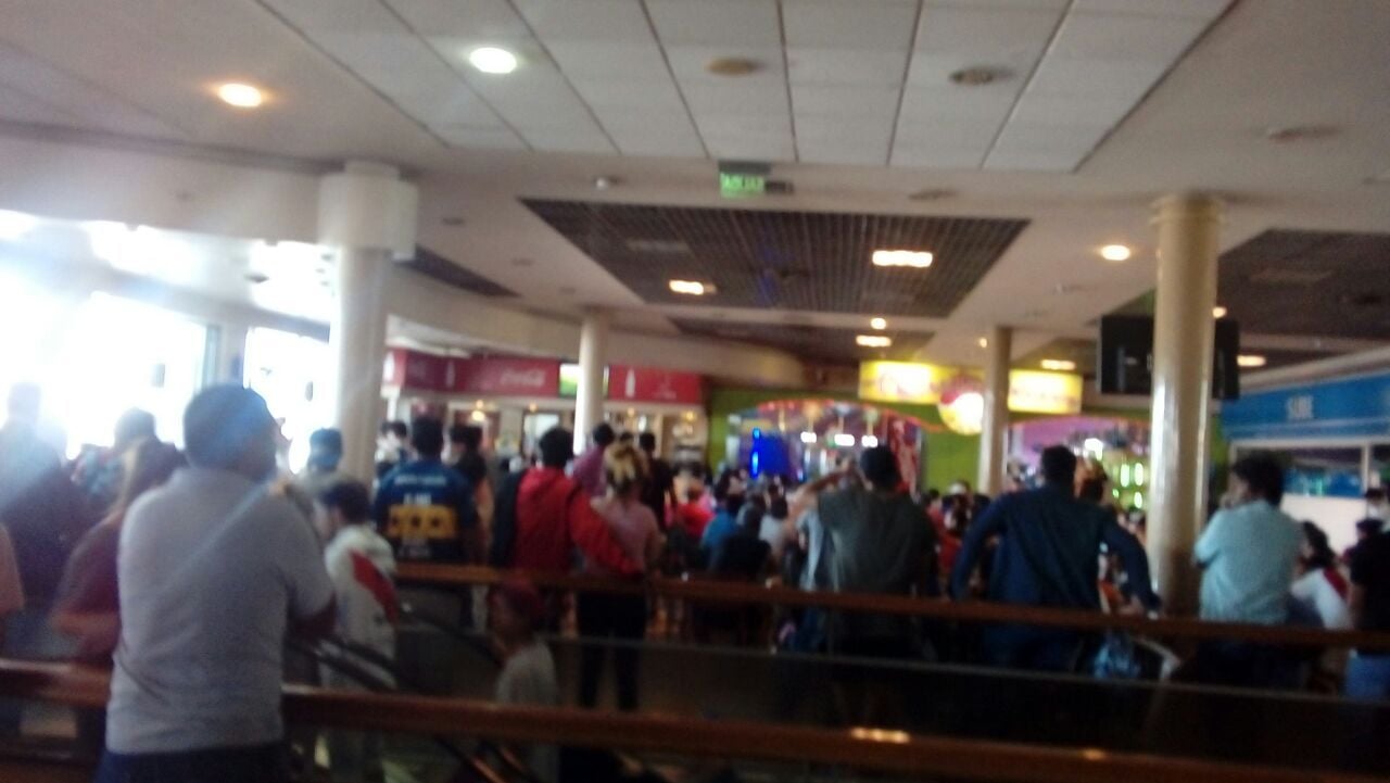 En el patio de comidas del Shopping Terminal una importante cantidad de simpatizantes de ambos clubes se hizo presente para seguir las alternativas del partido que, por el momento, gana Boca Juniors 1 a 0.