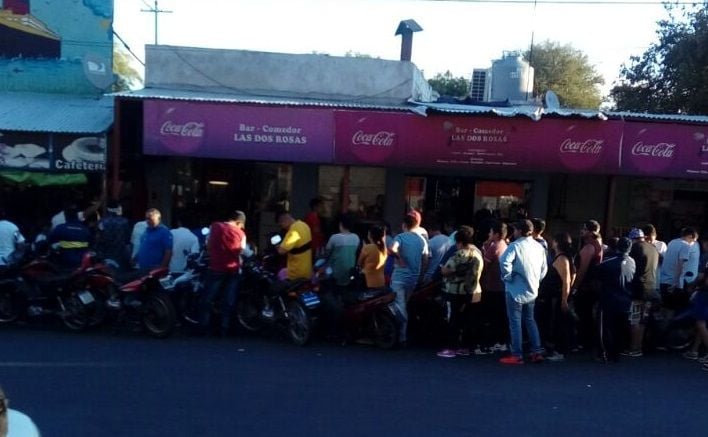 La postal se repite en cuanto bar hay en la ciudad. Algunos, los que pueden, resignan una consumisión para poder sentarse en una mesa y ver el encuentro. Otros, los que no tienen, se conforman con aglutinarse afuera de los locales y desde ahí seguir las instancias del partido.