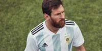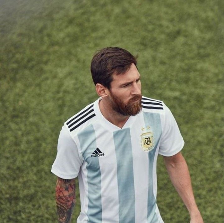 Lionel Messi fue uno de los modelos en las fotos que circularon en Internet con la presentación de la nueva casaca de la Selección, que tiene bastones celestes y blancos más anchos además de los laureles alrededor del escudo de la AFA.