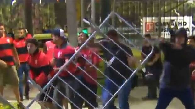 Los aficionados del Mengao tiraron las vallas y golpearon a los hombres de seguridad del alojamiento.