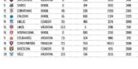 Del resto de los argentinos, Lanús está en el puesto 15, Estudiantes en el 17, Vélez en el 20, Independiente en el 31, Racing en el 33, Newell's en el 39, Central en el 42, Arsenal en el 49, Huracán en el 56, Godoy Cruz en el 57, Argentinos en el 80, Atlético de Tucumán en el 88, Banfield en el 91.