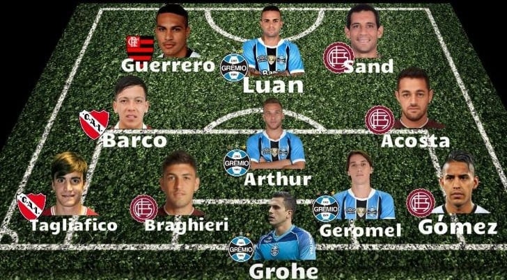 El once ideal de América quedó conformado de la siguiente manera: Marcelo Grohe (Gremio); José Luis Gómez (Lanús), Pedro Geromel (Gremio), Diego Braghieri (Lanús), Nicolás Tagliafico (Independiente); Arthur (Gremio), Lautaro Acosta (Lanús), Ezequiel Barco (Independiente); Luan (Gremio); José Sand (Lanús) y Paolo Guerrero, jugador de Flamengo.