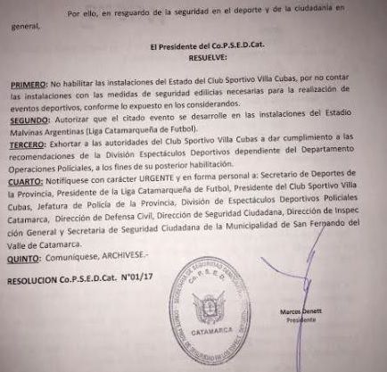 Así fue como se produjo la notificación del CoPSED de "No habilitar las instalaciones del estadio