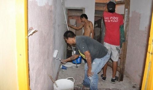 vestuarios seguían los trabajos de revoque y pintura, se ejecutaba la