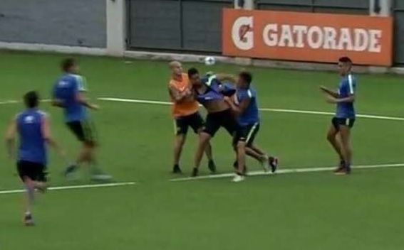 jugaban para el mismo equipo, comenzaron a pegarse casi sin mediar palabras.