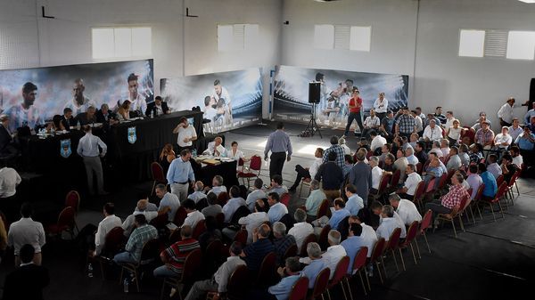 En el predio de la AFA en Ezeiza, los asambleístas se reúnen para encaminar la reanudación y normalización del fútbol argentino. Los puntos a tocar se dividen en una asamblea ordinaria y otra extraordinaria: rescisión del contrato con el Gobierno por el Fútbol Para Todos, creación de la Superliga y reforma del Estatuto.