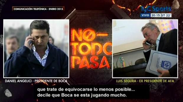 "Fijate de hablar vos directamente con el pibe este, Delfino, para el miércoles, que trate de equivocarse lo menos posible. Decile que Boca se está jugando mucho", le dice Angelici.